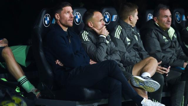 哈維·阿隆索(左一)在教練席 發