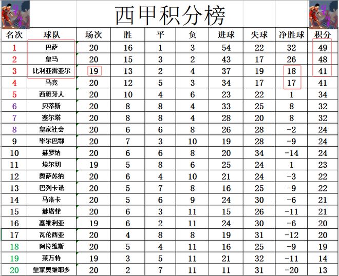 積分榜方面,巴薩11連勝被終止后,下半程剛開始,他們就被皇馬將分差縮小到了1分,兩隊(duì)的爭冠懸念還是很大。比利亞雷亞爾本輪輸球,無力再往前追皇馬,而且今天馬競今天贏球后追了上來,比利亞雷亞爾僅憑1個(gè)凈勝球守住第3。