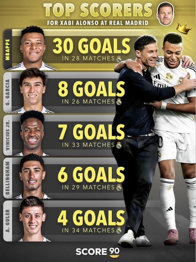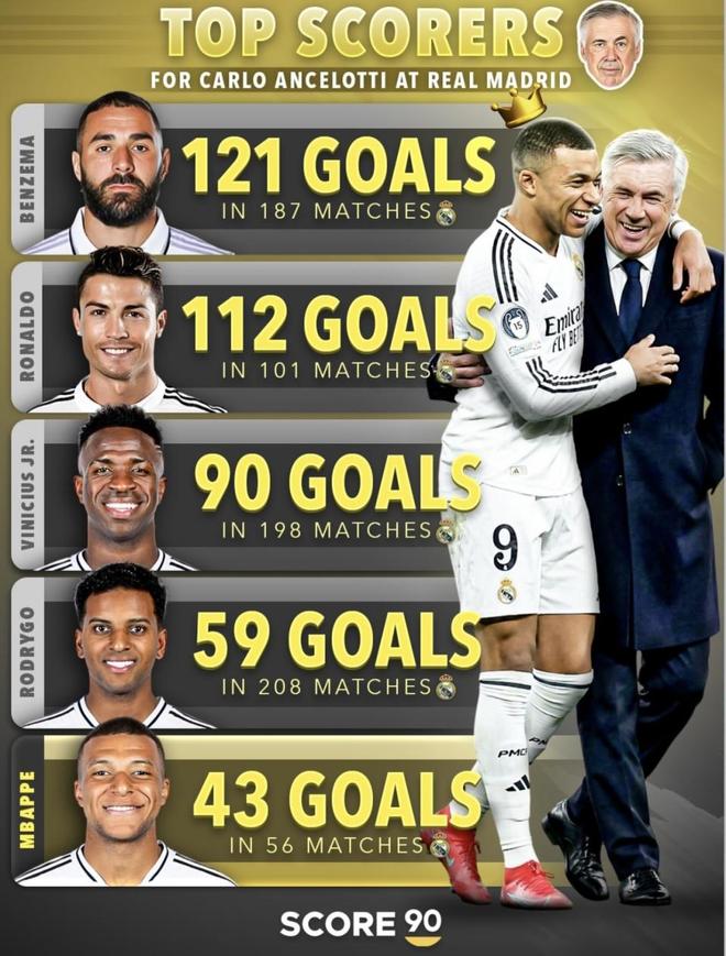 安切洛蒂那份是多年累積出來的結構,時間一長,球隊會自然形成更豐富的分工:有人吃掉一整段時間的第一終結任務,有人隨著位置變化和成熟度變成第二火力點,有人靠長期出勤把數量一點點堆上去。周期越長,進球分布越有層次,榜單就更容易變成“前排很多人都很高”。